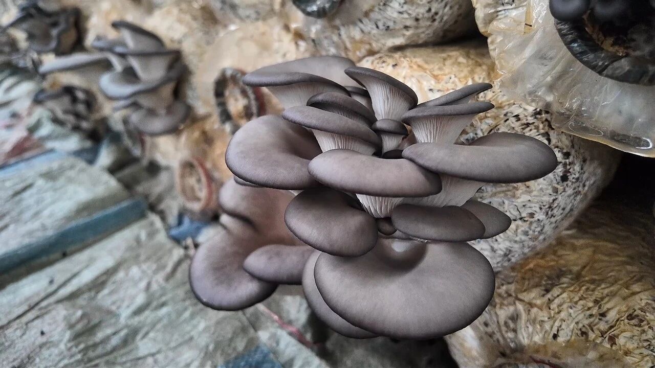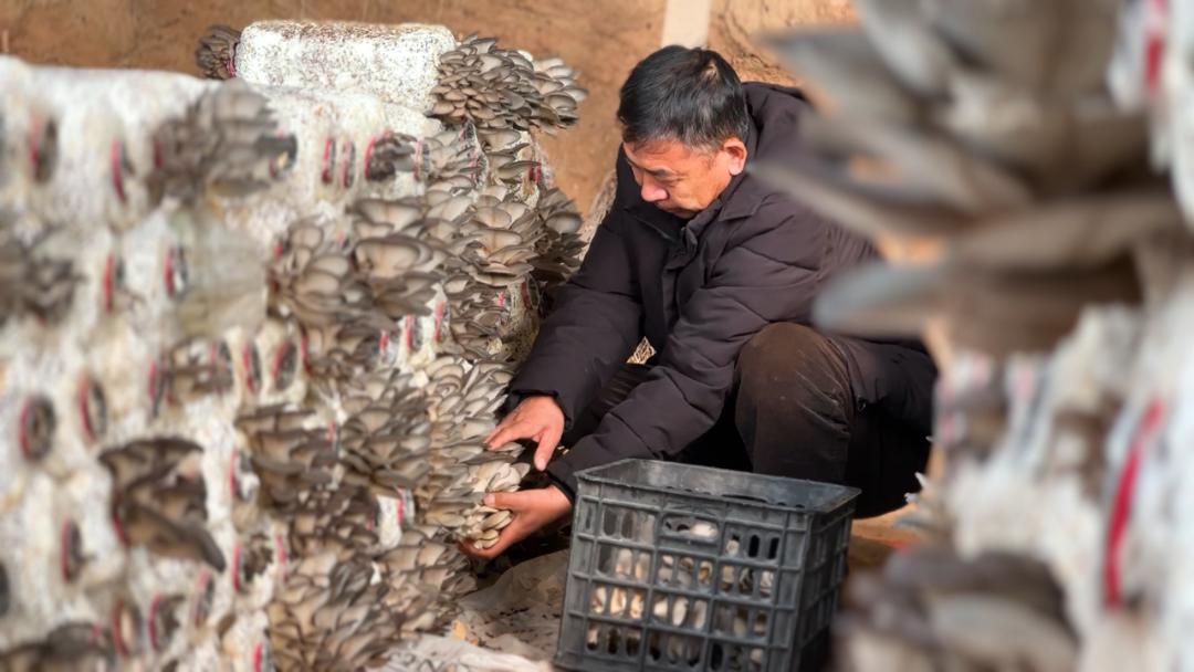 同时,通过精细化管理,实现了“一年五茬”。朱德财介绍,对每个棚的1.25万个菌包,进行标准化管护,保证了出菇整齐度与产量稳定性,并可以全年不间断循环生产。