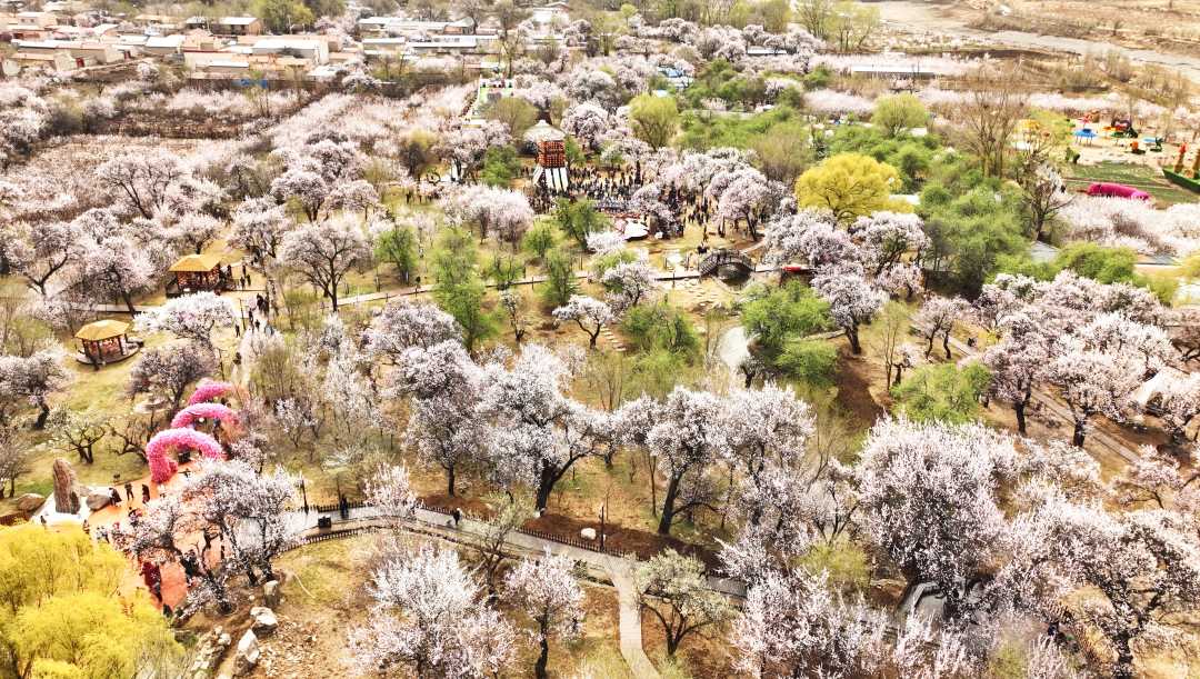 乌素图杏花谷景区内漫山杏花如云似雪。何鑫 摄
