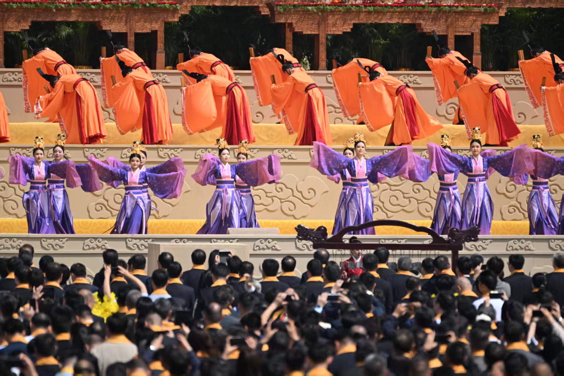 以致诚之礼仪,肃拜恭祀中华人文始祖轩辕黄帝,祈佑祖国繁荣富强、人民安居乐业,祈愿华夏文脉永续、世界和平安宁。