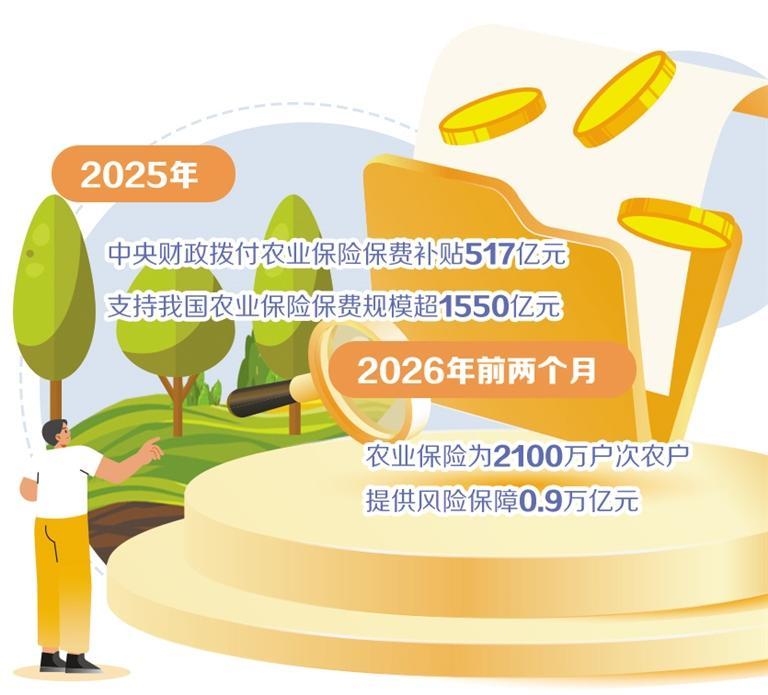 财政部发布的《2025年中国财政政策执行情况报告》显示,2025年,中央财政拨付农业保险保费补贴517亿元,支持我国农业保险保费规模超1550亿元、为1.25亿户次农户提供风险保障超5万亿元、向农户支付赔款超1200亿元。在西藏定日地震、台风“桦加沙”等灾害发生后,农业保险政策在减轻农户因灾损失方面发挥了重要作用。