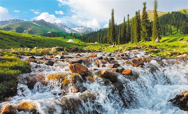 2025年5月23日拍摄的新疆维吾尔自治区伊犁哈萨克自治州那拉提旅游风景区美景。 许丛军摄 (中经视觉)