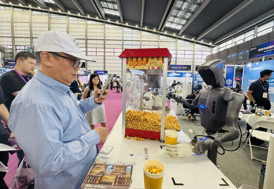 2026机器人全产业链接会现场,观众围观机器人盛爆米花。杨依琳摄