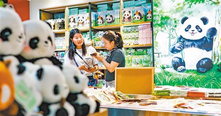 10月11日,游客在观音桥商圈一文创店选购商品。